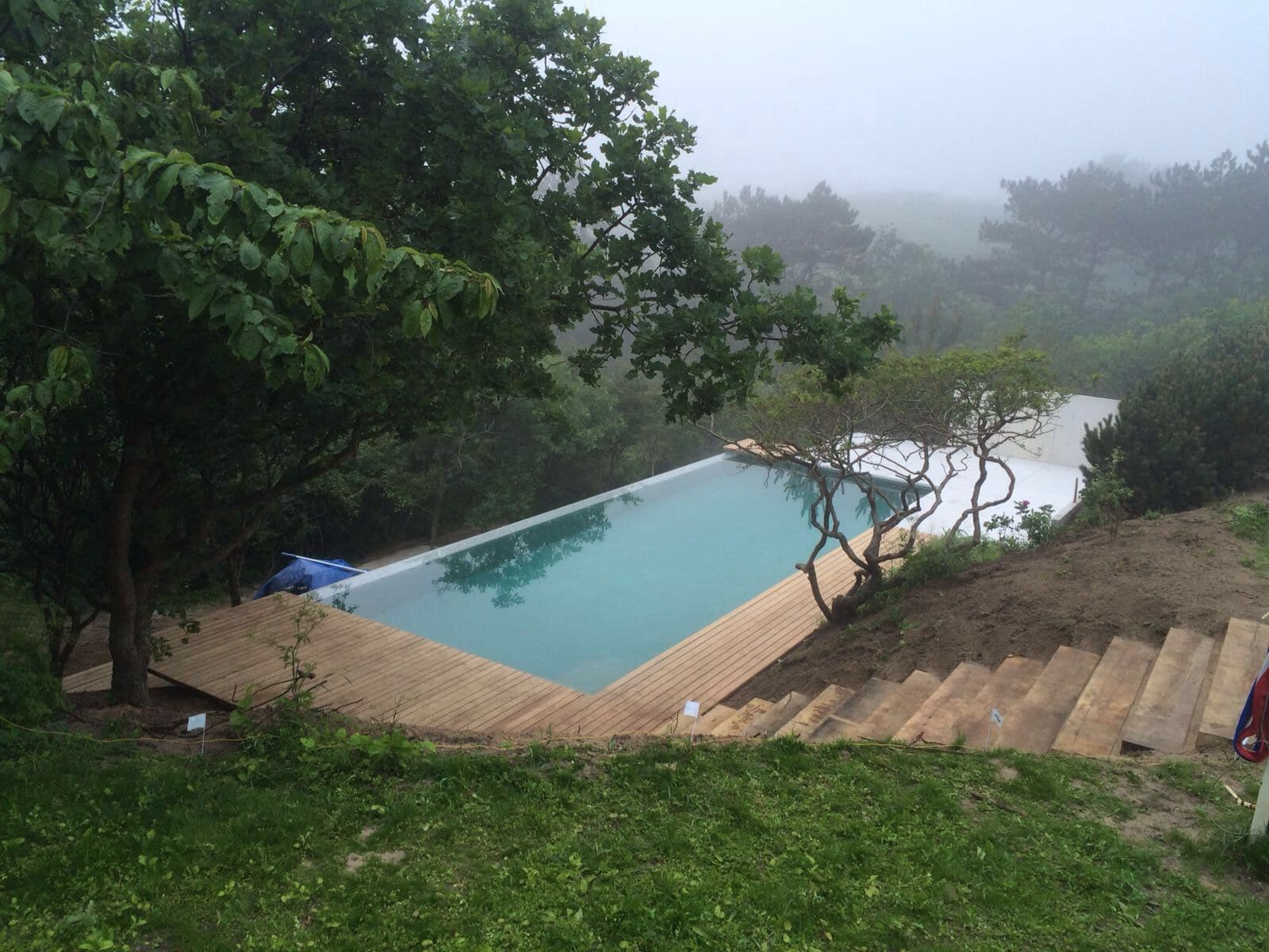Het foliezwembad is een constructie met een gewapend betonnen fundering en vloer, waarop met Isotone blokken de wanden worden gestapeld. Een degelijk bouwkundige constructie waarmee een goed geïsoleerd zwembad wordt gerealiseerd. Het sterke materiaal garandeert een solide kuip. Deze wordt vervolgens met folie afgewerkt om het zwembad waterdicht te maken. Met deze bouwwijze bent u dus wel wat beperkte in vormgeving. Een folie privézwembad kan bovendien niet worden afgewerkt met stuc of tegelwerk. De voordelen van een foliezwembad zijn de perfecte isolatie (dus energiebesparing), een snellere bouwtijd en mooie, strakke wanden.