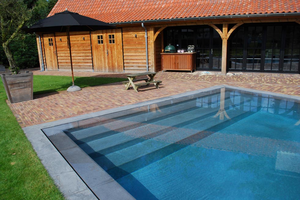Een buitenzwembad kan eigenlijk niet zonder afdekking: het scheelt energie, houdt het zwembad schoner, geeft algengroei minder kans en voorkomt verdampen van het water met chemicaliën.