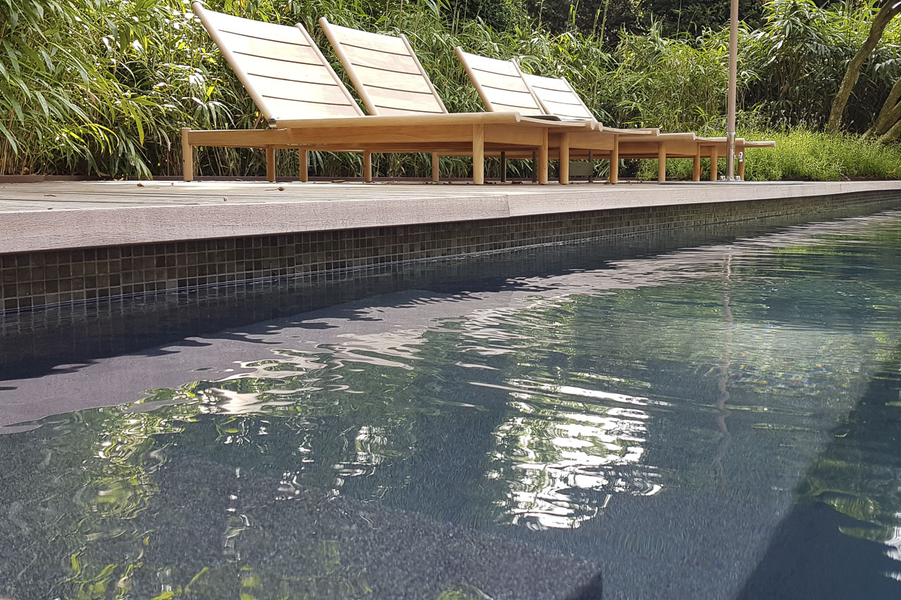 Helemaal zonder chemicaliën kunnen we nog niet, maar met het DAISY waterbehandelingsconcept (Dryden Aqua Integrated System) worden de chemicaliën teruggebracht naar een minimum, waardoor het chloor bijna niet meer waarneembaar is: