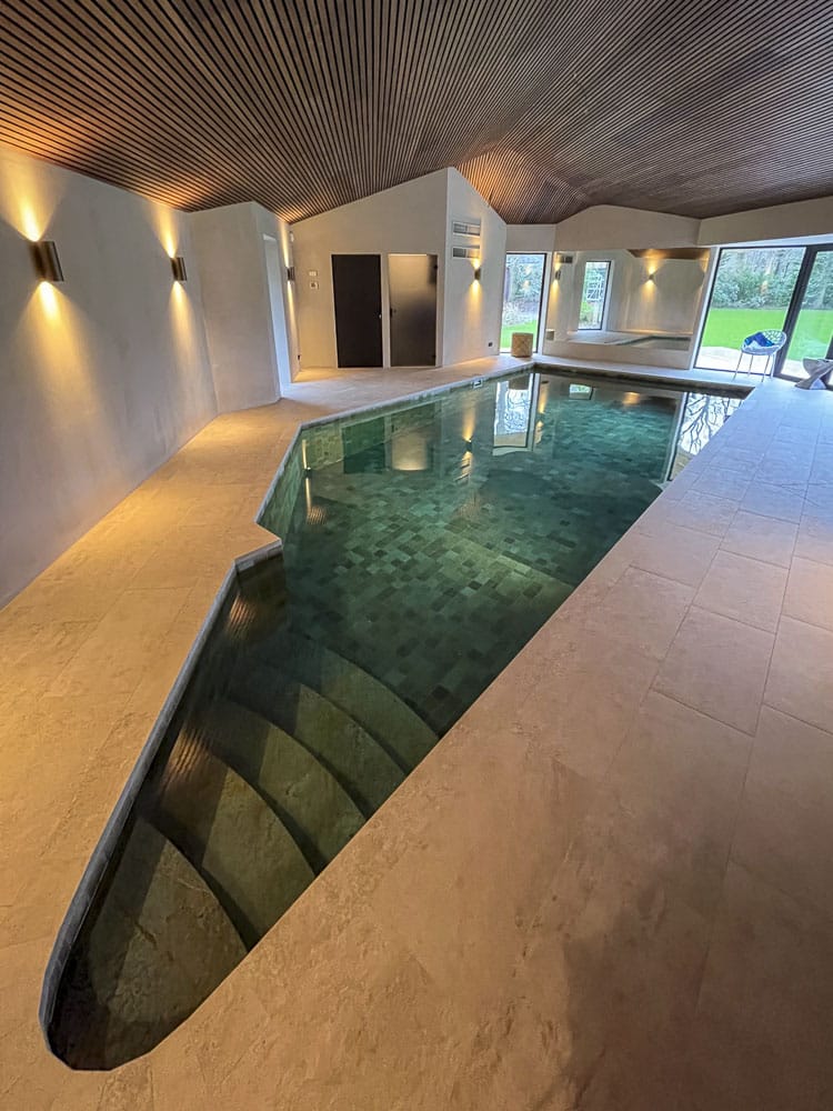 Dankzij het waterdicht opleveren van onze betonnen constructies, bent u compleet vrij in de keuze van de afwerking. Het beton kan gekleurd en gevlinderd worden, maar bijvoorbeeld ook afgewerkt met een coating, een stuclaag of met tegelwerk.